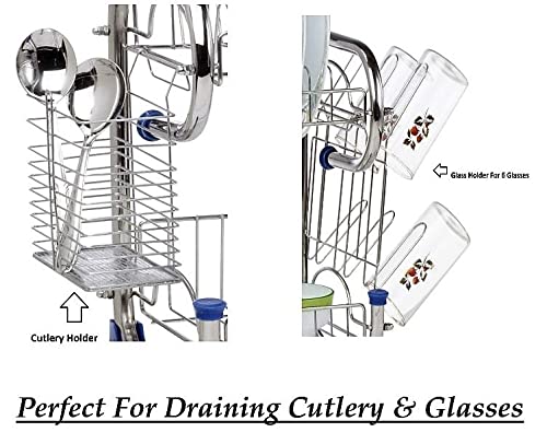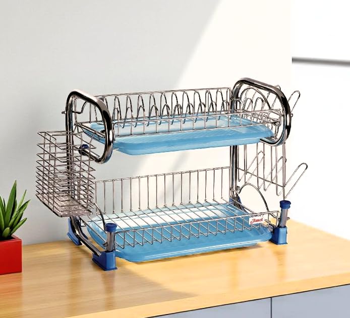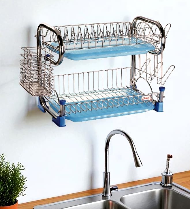 - ✅ Dual Plastic Drain Trays for Clean Kitchen Comes with two sturdy plastic drain trays to catch water drips from both upper and lower racks—keeping your kitchen counter neat and dry.